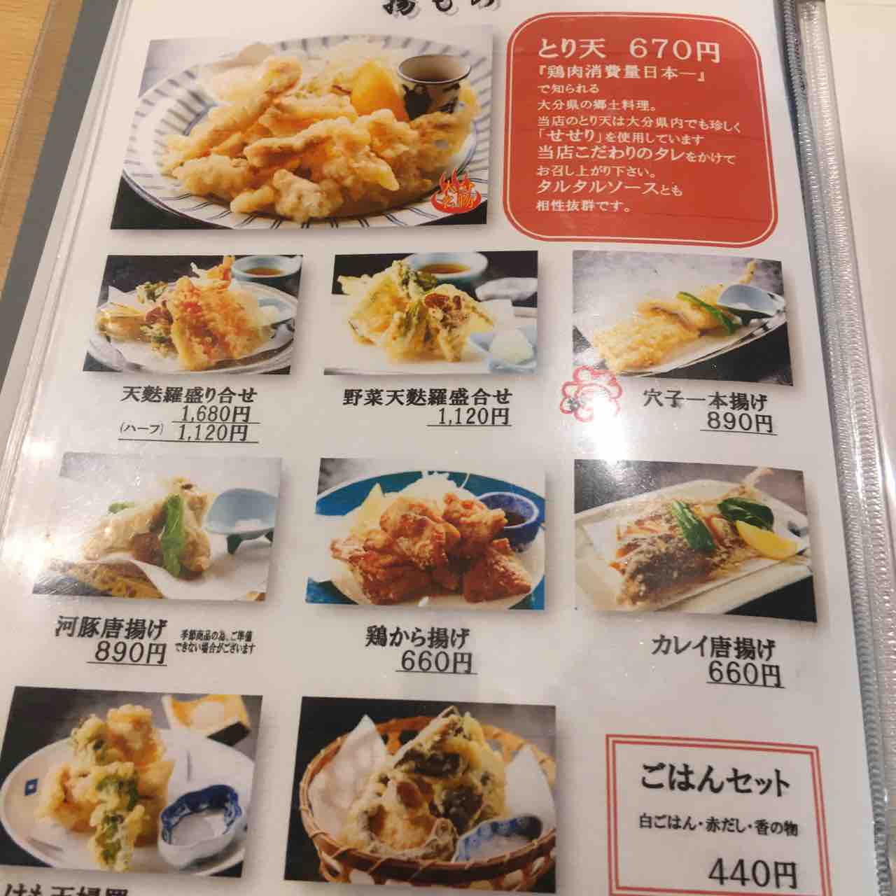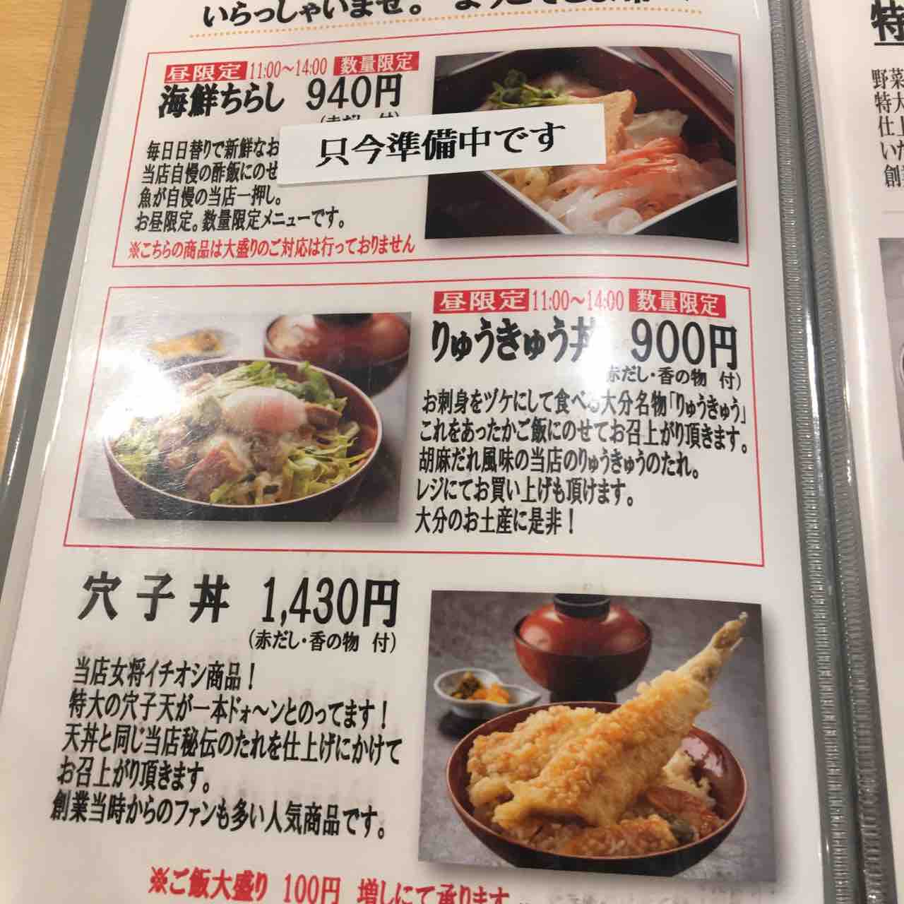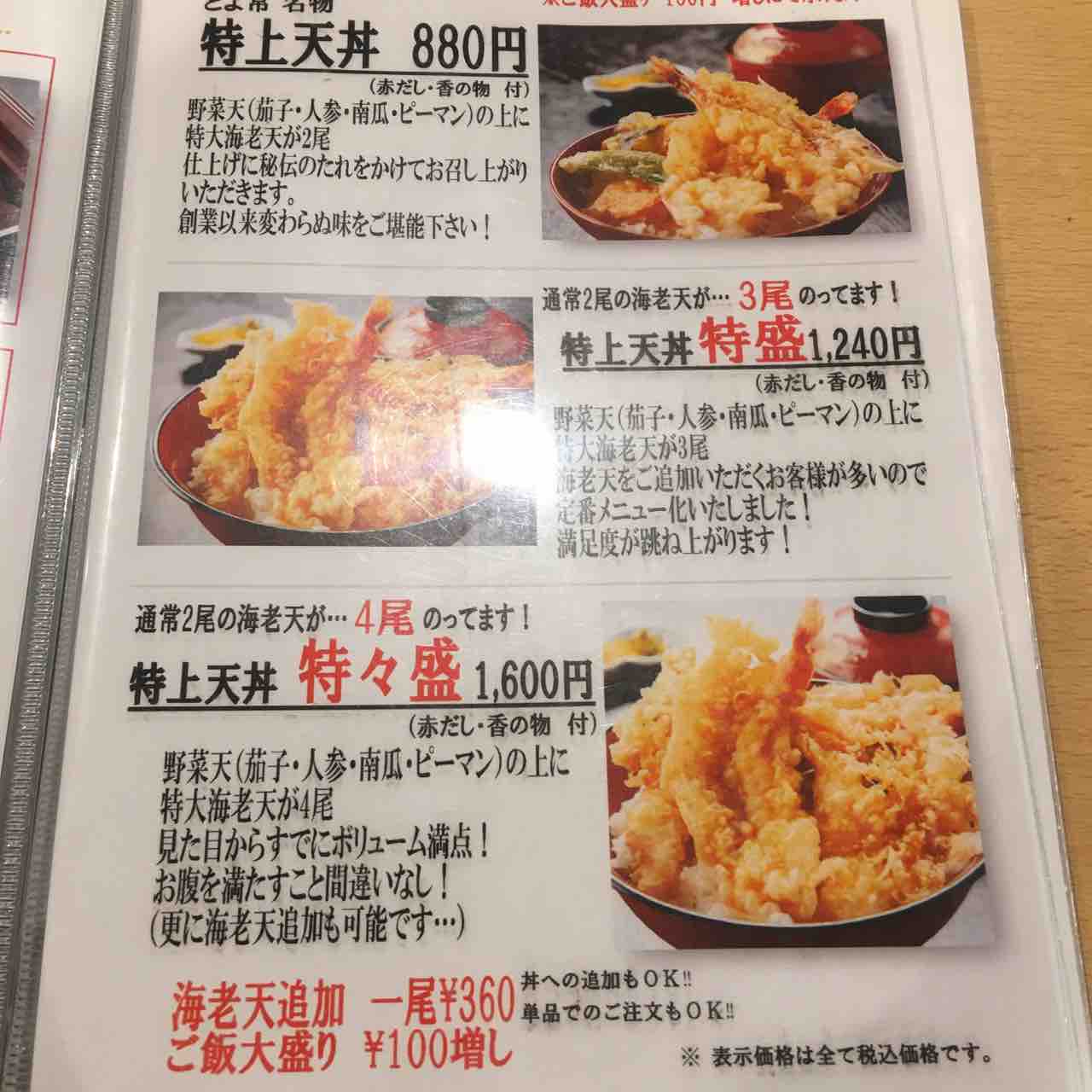 今回食べる特上天丼のメニューです。