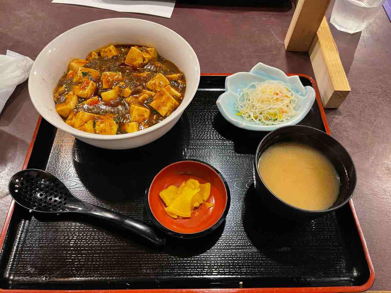 2022年09月23日 ランチ「餃子中華酒場シビカラ天神店 麻婆丼」in福岡県福岡市中央区 フラッと、仕事で福岡県にきました(*´▽`*)どこいこうかで、横道に入った中華料理屋さんに決です!メニューも多いし、活気もあって、夜に飲みに来たくなる充実したメニューです♪麻婆丼定食、ドン!(; ・`д・´)麻婆丼!(; ・`д・´)味噌汁とサラダ♪体に優しいお漬物♩美味しい麻婆丼でした♪福岡は美味しい店が多くて羨ましいですね~。ではでは、おしまい、ぶんぶん♩ヾ(´ω`=´ω`)ノ < 前の記事次の記事 > コメント コメントフォーム 名前 コメント 記事の評価 リセット リセット 顔 星 情報を記憶 コメントを投稿する