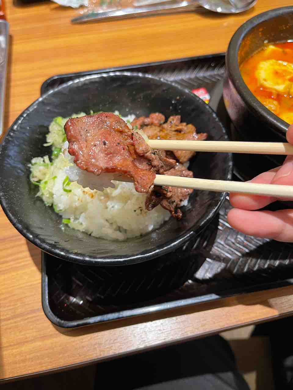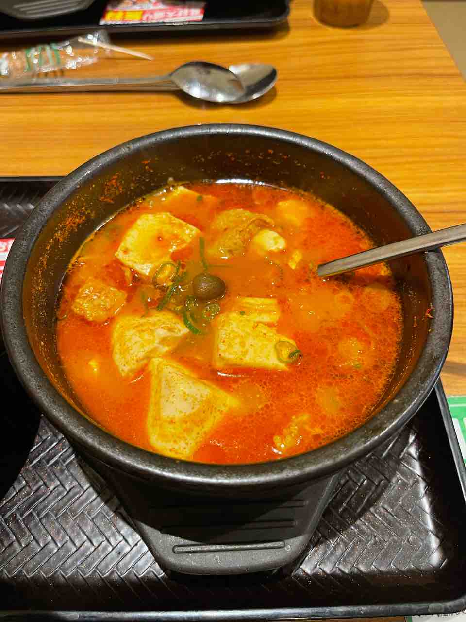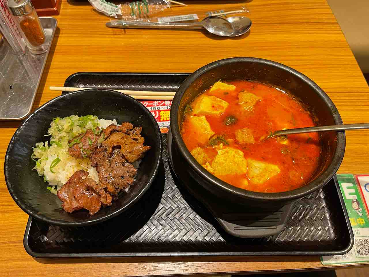 いつもカルビ丼だけなんだけど、休日なのでスン豆腐