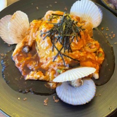 ランチ「Dishディッシュ西大分本店 エビとねぎとオマール海老のほぐし身のオムライス」in大分県大分市